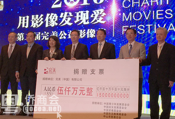 本届公益影像节,完美公司向五家慈善基金会共捐出善款5000万元