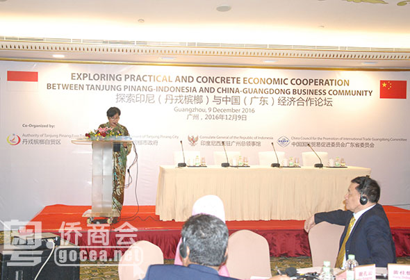 12月9日,由丹戎槟榔自贸区、丹戎槟榔市政府、印度尼西亚驻广州总领事馆与广东省贸促会共同主办的“探索印尼(丹戎槟榔)与中国(广东)经济合作论坛”在广州东方宾馆举行。印尼驻广州总领事琇翡女士、广东省贸促会副会长张华先后作开幕致辞。