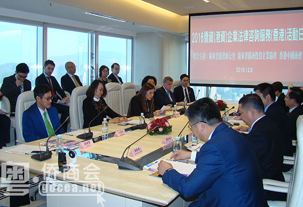 广东省侨办副主任郑建民、香港中国商会副会长叶子,香港中国商会副秘书长普慧艳,“广东省侨办为侨资企业服务法律顾问团” 律师谢娟、崔军、黄东伟、黄振辉等出席活动。香港中国商会常务副会长、创会会长陈丹丹主持活动。