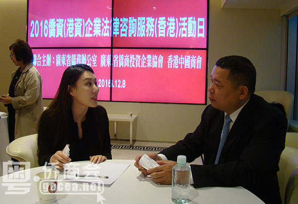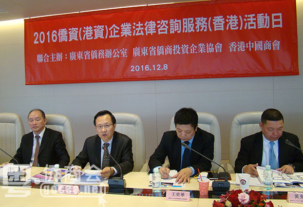由广东省侨办、广东省侨商投资企业协会和香港中国商会联合举办的“2016侨资(港资)企业法律咨询服务(香港)活动日”12月8日在香港启动,“广东省侨办为侨资企业服务法律顾问团”四位律师走进香港送法律服务,向侨资(港资)企业宣传国家最新的法律政策,听取并解答有关企业在中国内地生产经营、投资合作、维护权益、服务、贸易等环节遇到的法律问题,服务活动现场还提供一对一法律咨询服务。