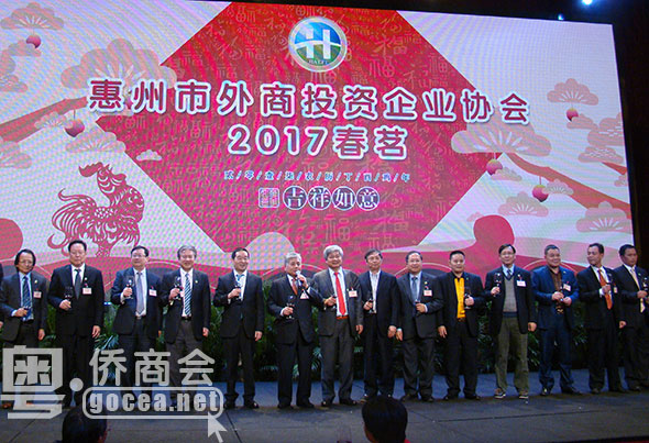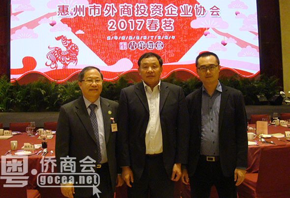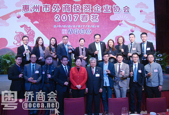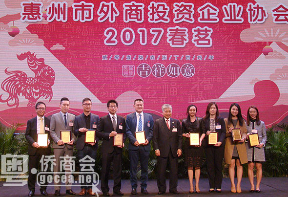 惠州市外商投资企业协会3月2日举行2017春茗晚会,广东省侨商会副会长兼秘书长黄柱焕、青年委员会主任马家慧等应邀出席,与七百多名嘉宾及外商协会会员共聚一堂,相互交流。惠州外商协会会长杨勋在晚会上致辞,并为新成立的“惠州市外商投资企业协会青年委员会”成员颁发证书。
