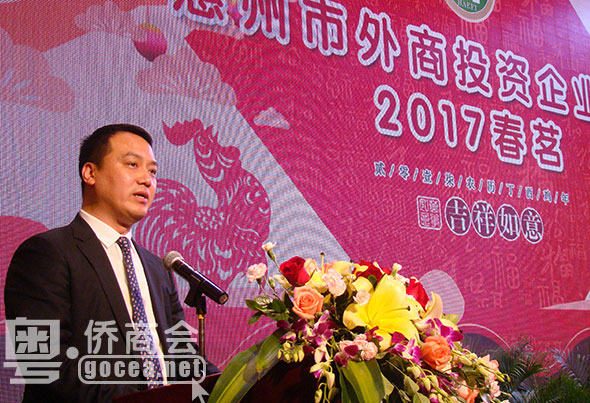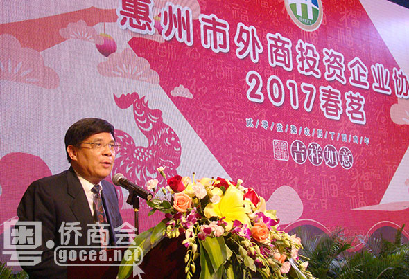 省商务厅副巡视员汪涛致辞,希望惠州市外商协会在新的一年里,进一步发挥桥梁纽带作用和自身优势,为推进惠州经济社会发展多作贡献。