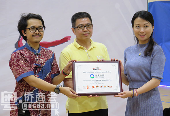 此次运动会得到了广东省侨商投资企业协会会长单位、完美(中国)有限公司,常务副会长单位、亚太森博(广东)纸业有限公司的大力支持,两家明星侨资企业各提供五万元赞助运动会的举办。印尼驻广州领事馆总领事拉图•西尔维娅•加亚特里、我会会长代表赵升才、亚太森博(广东)纸业有限公司总经理林华良等嘉宾及十九支代表队出席了开幕式。