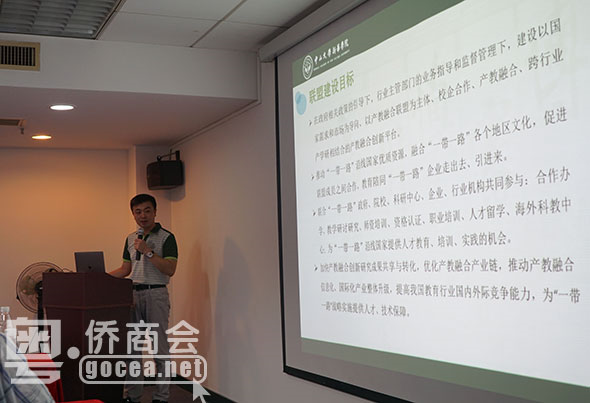 广东省潮州商会常务副秘书长刘奕祺围绕成立背景、人才需求、政策支持、新机遇、联盟架构、联盟定位、建设目标等方面介绍了中国一带一路产教融合创新联盟的筹备设想,与会人员对该方案进行了深入探讨。