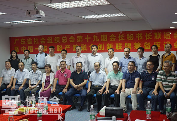 6月16日,由广东省社会组织总会主办的第十九期会长秘书长联谊会暨中国一带一路产教融合创新联盟筹备座谈会在广州召开,广东省侨商投资企业协会副会长兼秘书长黄柱焕等20多位来自国家院校、研究机构、教育行业组织、教育企业及综合性企业商会的负责人出席会议。省社会组织总会执行会长、中山大学新华学院董事长刘荣海,执行会长方向文分别致辞。