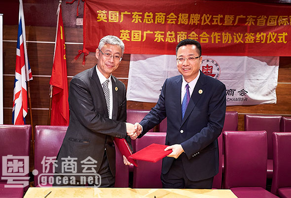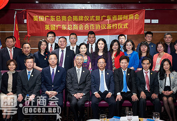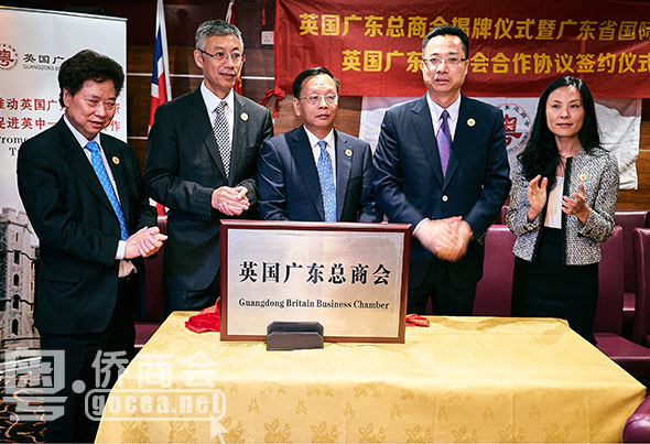6 月 13 日,在广东省省委书记胡春华率领的大型广东省政府和经贸代表团访问英国期间,英国广东总商会在伦敦举行成立揭牌仪式,广东省侨商会副会长鲁展雨被推选为首届会长,并与到访的广东省国际贸易促进委员会会长、广东省国际商会会长林涛所率的代表团一行13人举行揭牌和签约仪式,意味着英国广东总商会将成为广东省国际商会在英国的海外商会成员,有利于促进英国侨胞和华人参与到广东的经济文化建设和发展。