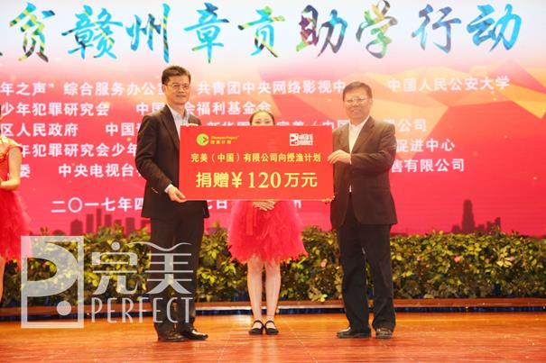 民政部国家减灾中心副主任、赣州市市委常委、副市长张晓宁;中国社会福利基金会理事长戚学森;最高人民检察院副厅级检察员、中国预防青少年犯罪研究会少年司法制度专业委员会秘书长刘雅清,中国人民公安大学党委宣传部部长董晓宇等领导,以及来自全国的完美爱心人士代表、媒体记者等400多人出席此次活动。完美公司现场捐赠善款120万元,用于支持授渔计划江西赣州助学行动。