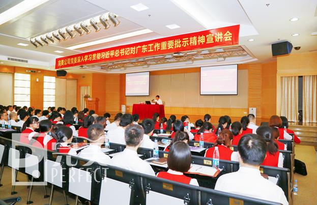 6月27日,为纪念中国共产党建党96周年,完美(中国)有限公司党委举办“庆七一、上党课”活动,深入学习贯彻习近平总书记对广东工作重要批示精神。广东省委宣讲团成员、省委宣传部副巡视员李长青应邀至完美公司授课,以《解读习近平总书记重要批示和胡春华书记在省第十二次党代会上的报告精神》为题,为全体完美党员呈上一堂精彩党课。