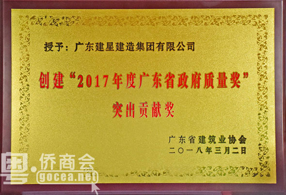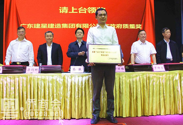 2017年,广东省政府质量奖首次将建筑业纳入评审范围,建星集团凭借多年来在全面质量管理方面取得的成果,通过层层严格评审获得殊荣,是第一家获得“广东省政府质量奖”的建筑企业,也是10家获奖企业中的唯一一家建筑企业。为表彰建星集团获得的卓越成绩,会上由省住建厅副厅长蔡瀛授予建星集团创建“2017年度广东省政府质量奖”突出贡献奖,充分肯定建星集团在全面推进卓越绩效管理、坚持技术创新、注重品牌和信誉等方面取得的显著成果,并号召全省广大建筑企业认真学习先进经验,坚持走质量效益型道路,为建设质量强省,做大做强广东省建筑业作出更大贡献。会上,建星集团还被授予“广东省建筑业AAA级信用企业”、“2017年度广东省建设工程金匠奖”、“2017年度广东省建设工程优质奖”多个奖项。