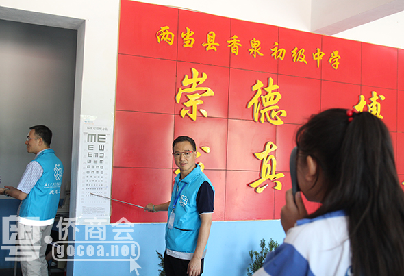 仪式上基金会创会会长蔡光向两当县人民政府督导办主任罗寰颁发了“侨爱工程情系甘肃 两当县学生视力保障基地牌匾”,中山大学中山眼科陈林兴医生为参加仪式的学生进行爱眼护眼知识宣讲,针对如何预防及改善视力问题进行了专业化的讲解。