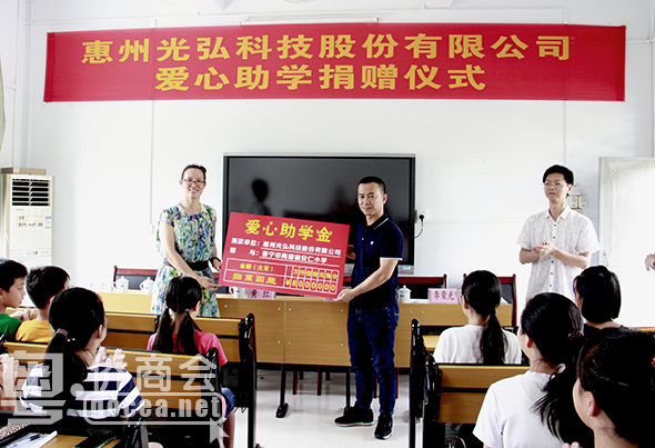 我会副会长单位、惠州光弘科技股份有限公司在不断发展壮大的同时,热心公益,回报社会,尽自己的绵薄之力为社会做力所能及的贡献。近年来,公司先后为河源、梅州、潮州、惠州、普宁等地的学校捐赠教学设备及教学基金。