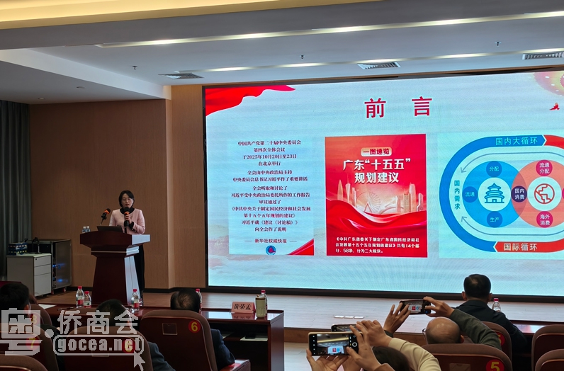 省委统战部有关领导对2025年全省各地侨商组织在各业务主管部门的指导下所取得的会务成效表示肯定。他说,侨商组织作为“侨”优势的重要组成部分,始终是党和政府联系广大侨企侨商的桥梁纽带,做好新时代侨商组织工作,对更好的团结汇聚侨商力量,服务国家发展大局,促进侨商事业的发展等具有重要的意义。希望大家要进一步提高政治站位,深刻认识新时代侨商组织工作的重要性;要聚焦“十五五”,引领侨商侨企为广东争创新优势,实现新突破贡献力量。他强调,一个凝聚力、执行力强的秘书处团队是保障商会正常有效运作的关键,建议各侨商组织要加强在新形势下服务侨商侨企方面的创新和探索;加强跨行业向各类商协会学习借鉴,聚焦社会经济热点和侨企发展的主方向;要深入了解侨企侨商的需求,提供精准的服务,及时将服务工作成效、困难建议诉求等报告材料上报,为党政部门提供决策咨询。