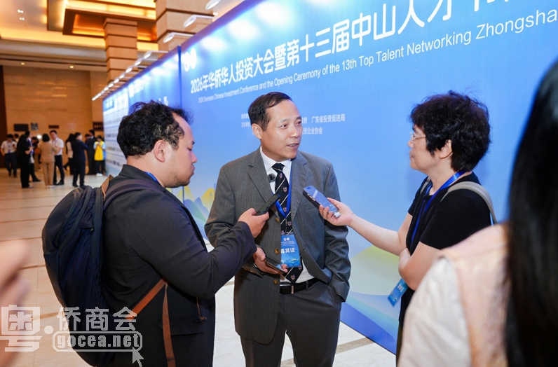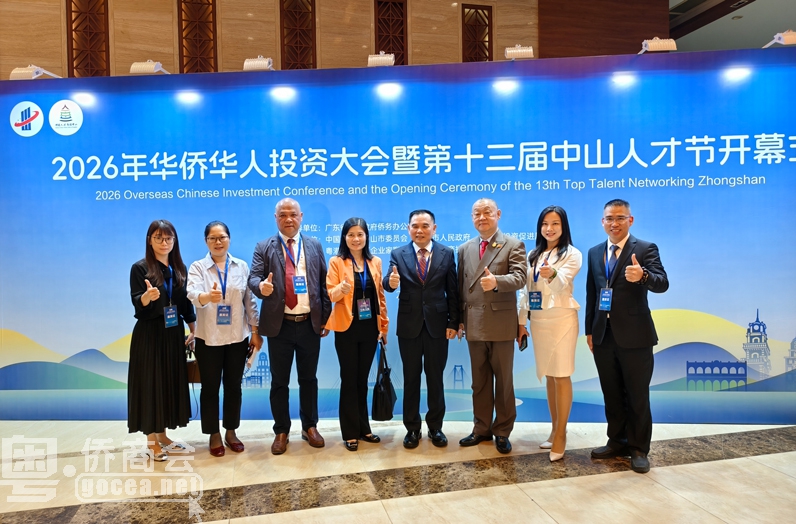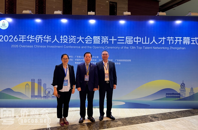 3月30日上午,2026年华侨华人投资大会暨第十三届中山人才节在中山温泉宾馆国际会议中心开幕,活动吸引来自20多个国家和地区的150多位华侨华人代表,与知名企业家和各领域优秀人才代表齐聚一堂,共计400余人,共商合作大计,共绘发展蓝图。广东省委统战部有关负责人,省侨商会会长古润金,副会长黄荣孟、谢清禄、罗爱武,常务理事蔡国赞、阮志平、李祯杰、莫济万,理事邹长征,青委魏凡帆以及佛山、东莞、江门、中山、珠海等市侨商会代表共30余人出席会议。
